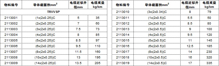 - TRVVSP雙絞屏蔽拖鏈電纜技術參數