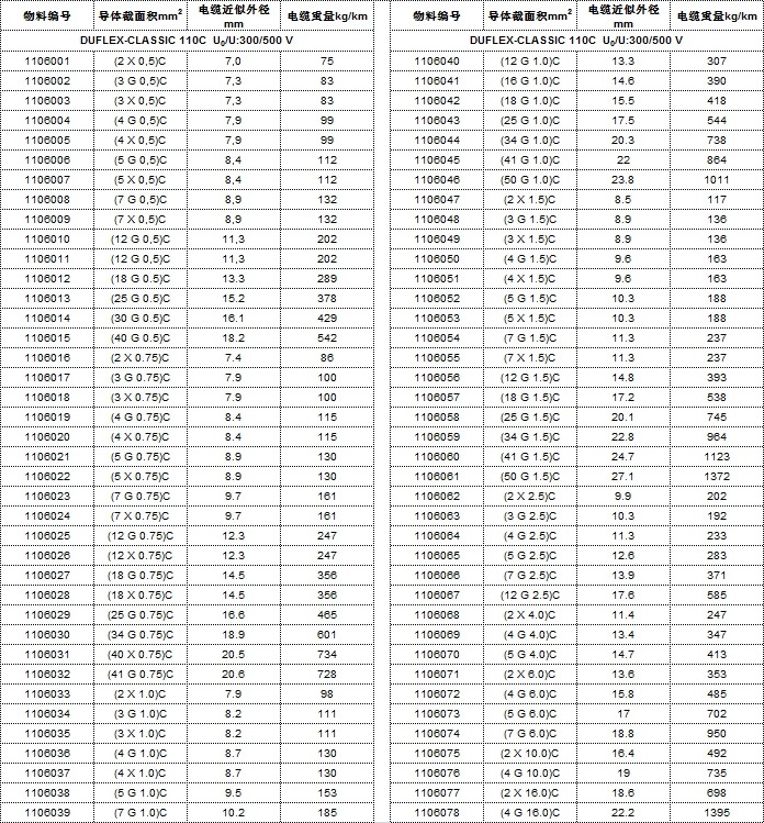 DUFLEX-CLASSIC 110C技術參數