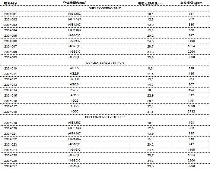 - DUFLEX-SERVO 781C/781 PUR/781C PUR技術參數