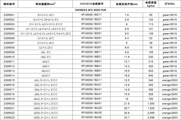 加強型PUR護套西門子6FX-8008反饋電纜/伺服電機電纜