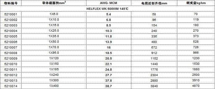 - HELFLEX WK 500WM技術參數